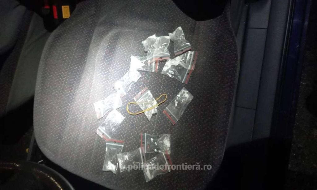 „În urma verificărilor efectuate asupra autoturismului, în portiera stânga față au fost descoperite 15 pliculețe în care se afla un praf de culoare albă, posibil metamfetamină. Persoana în cauză a declarat că a împrumutat mașina de la un prieten și că nu știa de pliculețele din portieră.