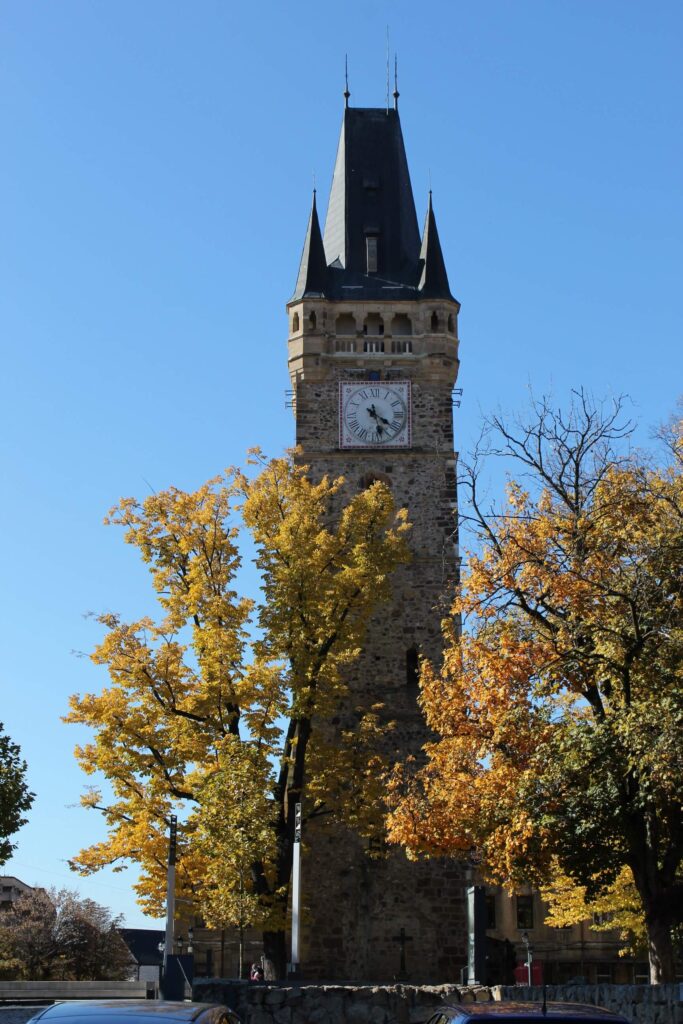 Din impunătorul edificiu al Bisericii gotice „Sfântul Ştefan” a rezistat vicisitudinilor de tot felul, până astăzi, turnul-clopotniţă, respectiv, Turnul Sfântul Ştefan. Numele de „Sfântul Ştefan” vine de la primul rege al Ungariei, Ştefan I (1000-1038), canonizat ca sfânt al Bisericii Catolice în anul 1083.