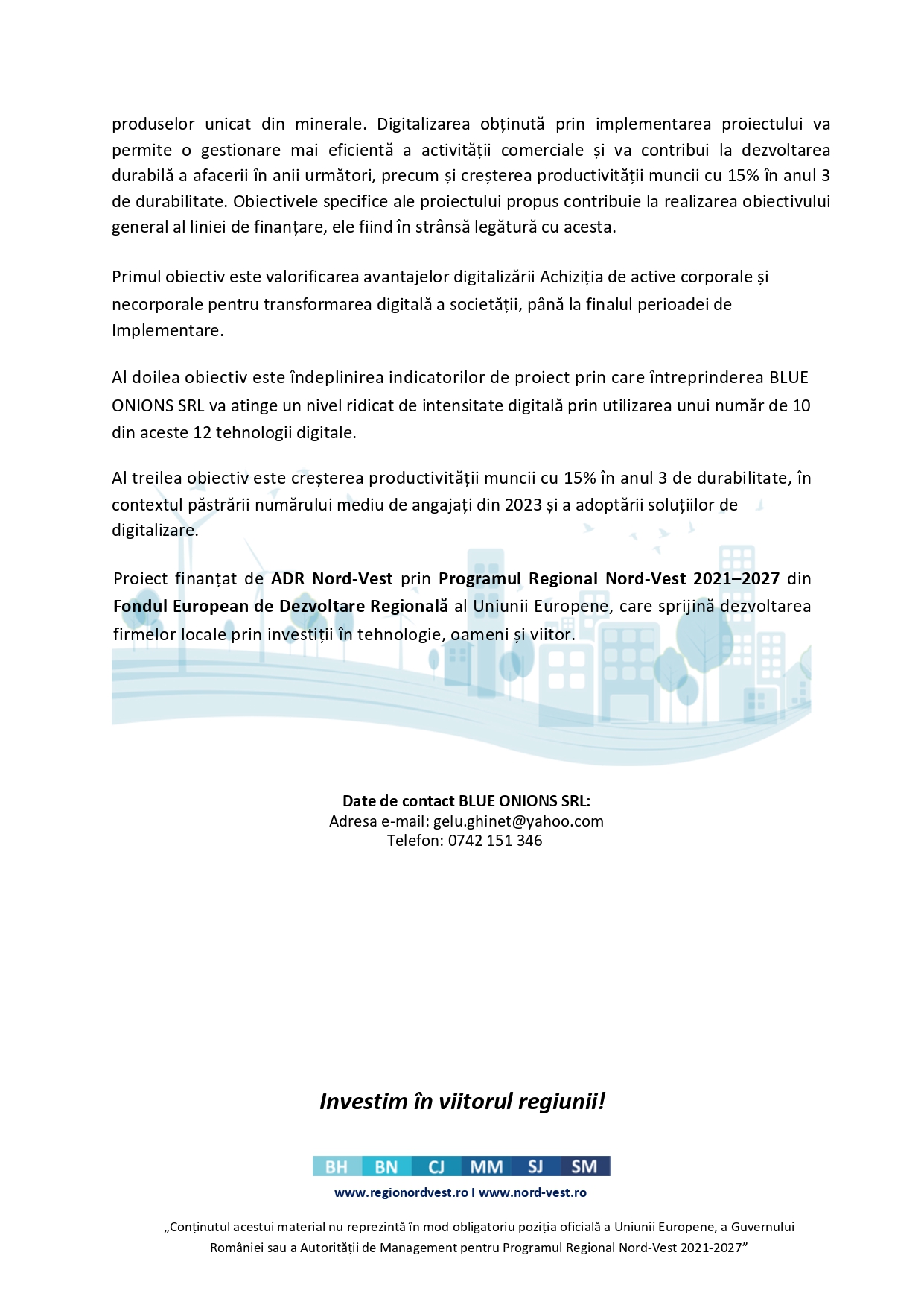 BLUE ONIONS SRL începe implementarea proiectului „Digitalizarea societății BLUE ONIONS
