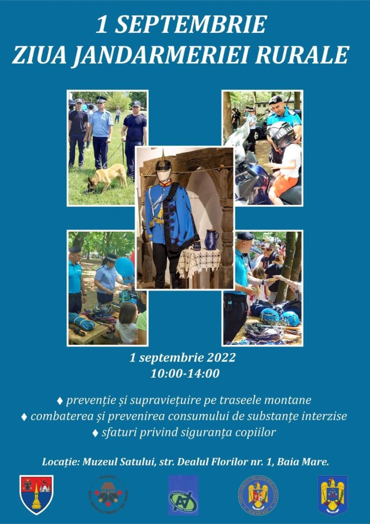 Pe data de 1 septembrie 2022 marcăm 129 de ani la înființarea Jandarmeriei Rurale. În acest context, Consiliul Județean Maramureș, prin Muzeul Județean de Etnografie și Artă Populară Maramureș, în parteneriat cu Inspectoratul de Jandarmi Județean Maramureș, Biroul Siguranță Școlară din cadrul IPJ MM și Agenția Națională Antidrog, vă invită la o serie de activități dedicate acestei zile, care vor avea loc mâine, 1 septembrie, în Satul de pe Deal din Baia Mare.