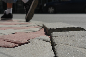 Pe sectorul cuprins intre strada Gheorghe Bilascu si Bulevardul Bucuresti, s-a executat un astfel de covor de pavele. Cum arata el… se vede limpede din imaginile de mai jos. Pavele sparte, borduri crapate, distante mari intre covorul de pavele si borduri (numai bine sa intre apa si sa inghete, la iarna, producand dilatatii si, implicit, fisuri), pavele lipsa. In cateva cuvinte, o lucrare facuta in bataie de joc, pe bani publici.