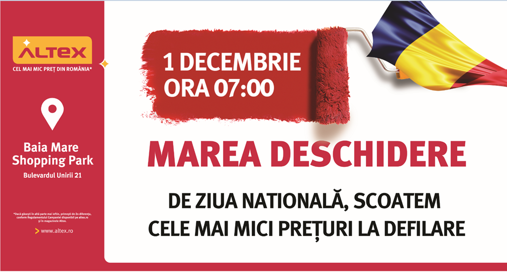 Altex deschide un nou magazin în Baia Mare! Marea deschidere are loc pe 1 Decembrie în centrul comercial Shopping Park