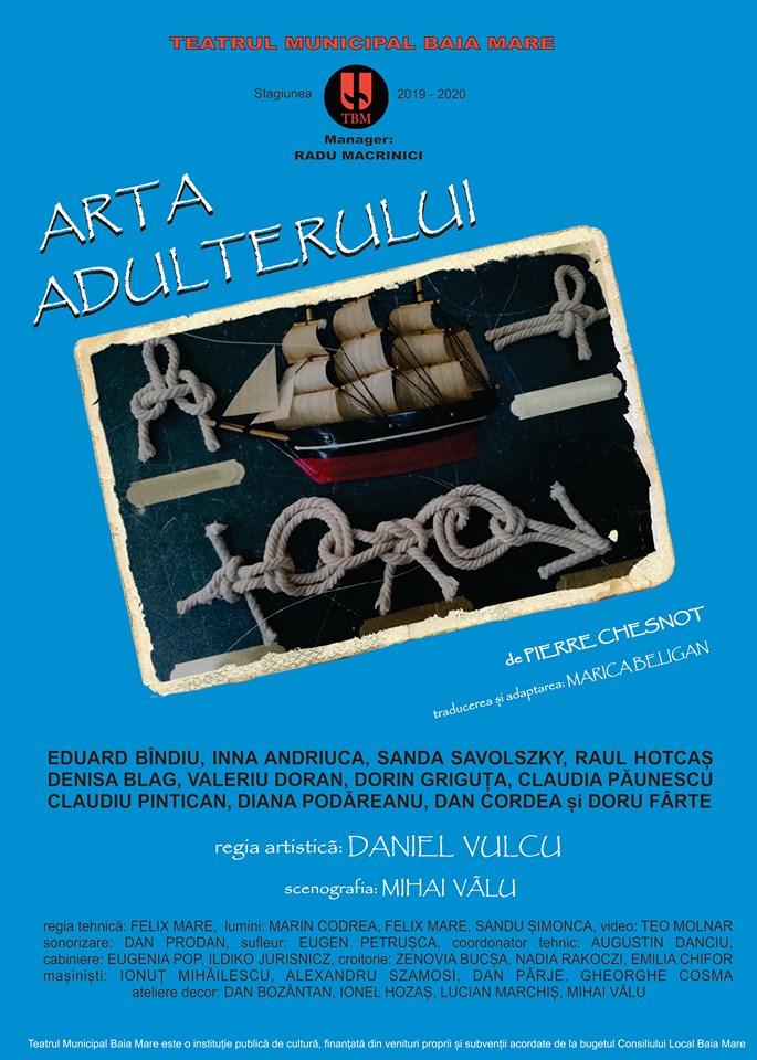 Vineri, 28 februarie, de la ora 19.00, publicul baimarean este invitat la o noua premiera a Teatrului Municipal Baia Mare, spectacolul ”Arta adulterului” de Pierre Chesnot, regia Daniel Vulcu, scenografia Mihai Valu.