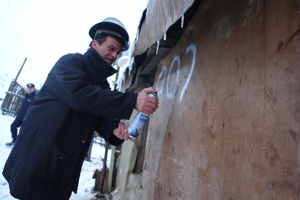 Gardienii si functionarii Primariei au probleme in a inscriptiona numerele cocioabelor pe bucatile de carton care absorb umezeala. Dolha ia unul dintre tuburi si incearca sa scrie. Dar degeaba. Nu merge.
