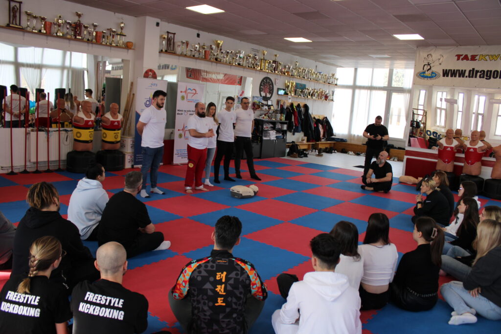 ”La buna desfășurare a cursului și-au adus contribuția ACS Dragonul care a pus la dispoziție sala de antrenament și cei cinci voluntari ai Asociației pentru SMURD Baia Mare coordonați de dr. Juca Dacian care a prezentat celor 27 de instructori prezenți, cele mai eficiente metode de acordare aprimului ajutor.