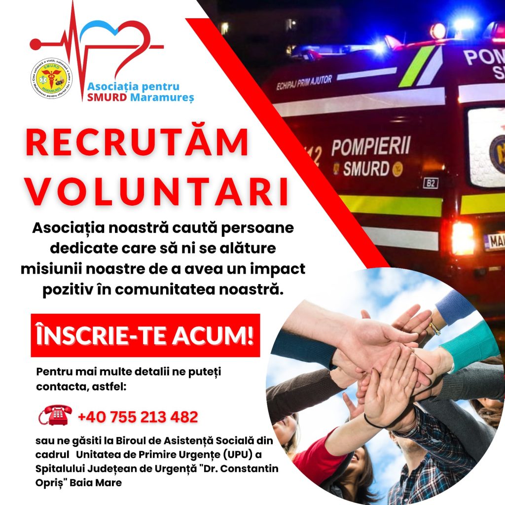 Asociația pentru SMURD Maramureș demareaza programul de voluntariat si incepe recrutarea voluntarilor în cadrul Departamentului UPU-SMURD Maramureș.