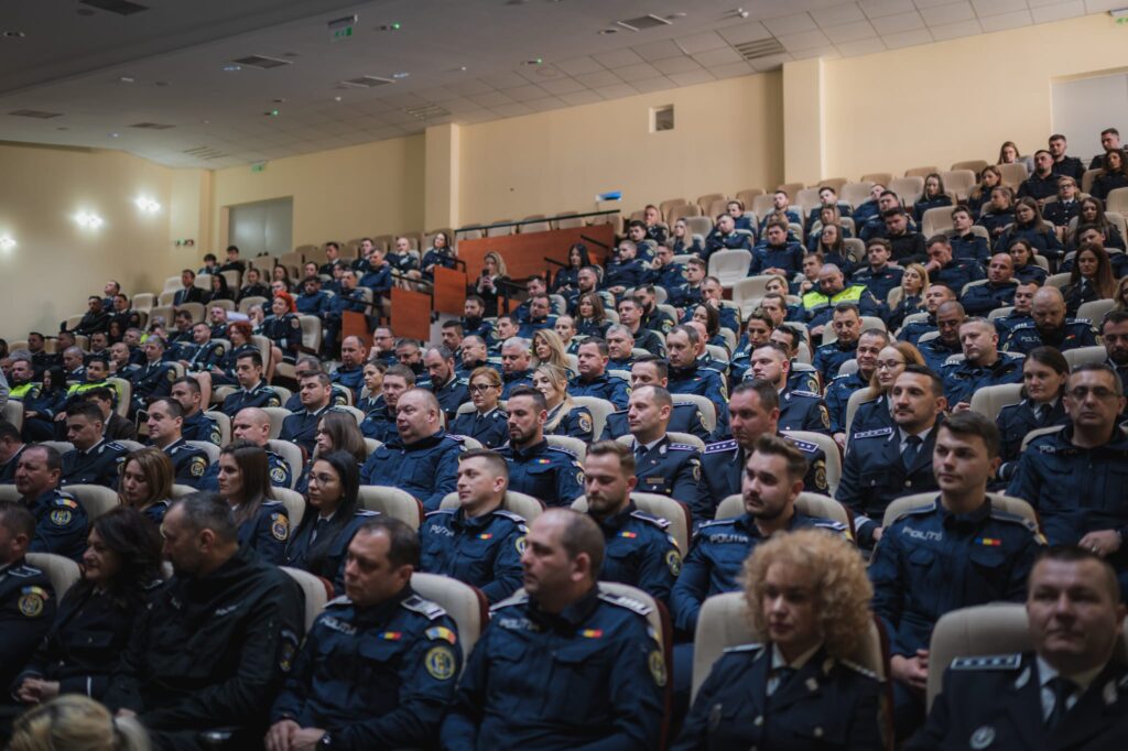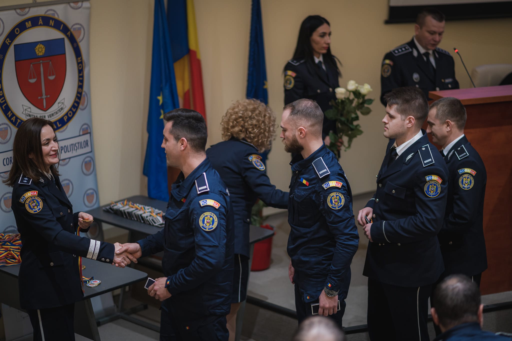 ”În această zi de sărbătoare ne-au onorat cu prezenţa reprezentanţii administraţiei publice judeţene şi locale, reprezentanţii organizaţiilor profesionale şi sindicale ale poliţiştilor, conducătorii unităţilor şi structurilor Ministerului Afacerilor Interne reprezentate la nivel judeţean, ai celorlalte instituţii din sistemul de ordine publică şi siguranţă naţională, Ministerului Public şi Justiţie, precum şi reprezentanţii altor instituţii publice, mass-mediei şi personalităţi de marcă ale societăţii civile, cărora le mulţumim pentru faptul că au ales să fie alături de noi în acest moment special.