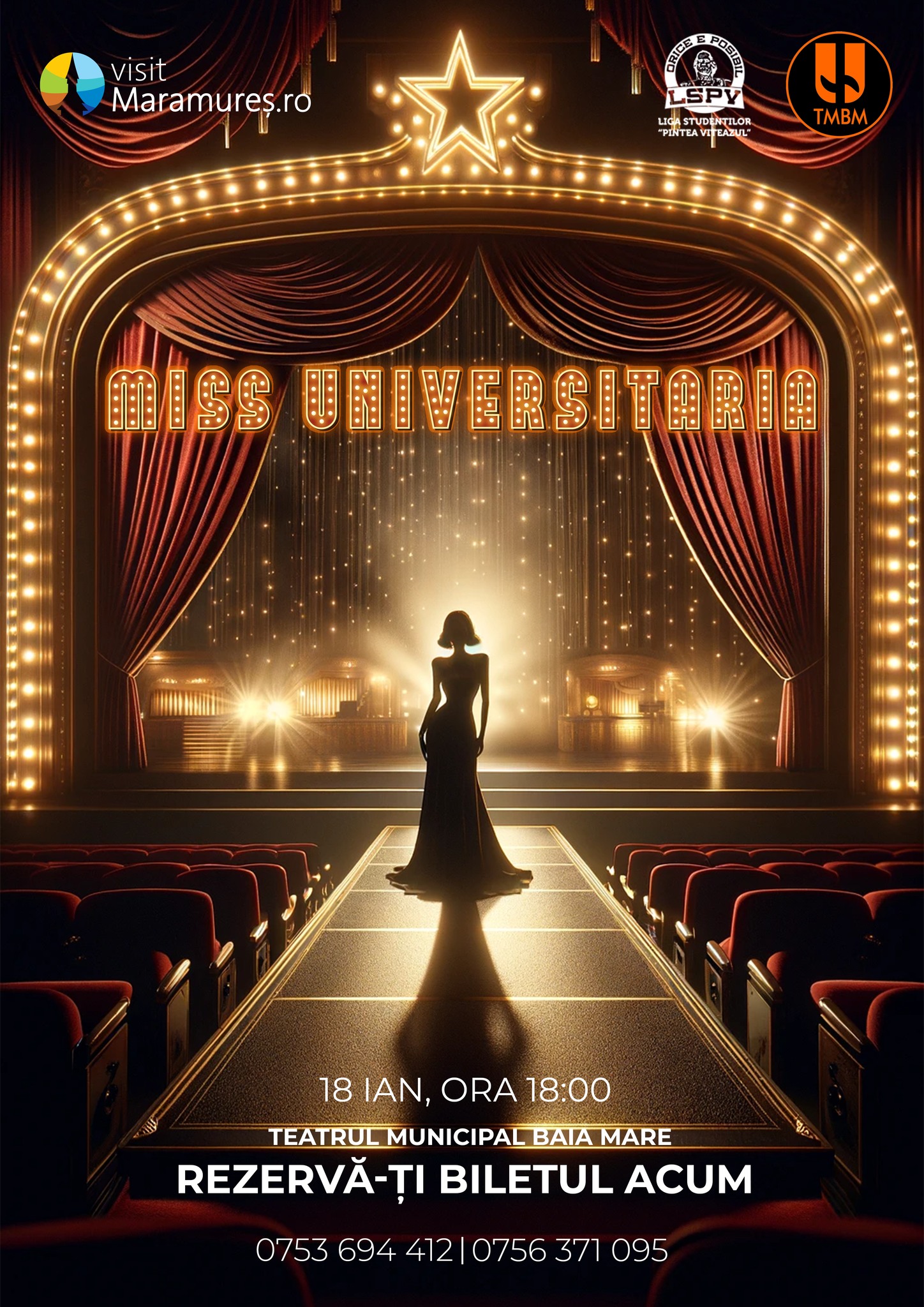 În data de 18 ianuarie, începând cu ora 18:00, la Teatrul Municipal Baia Mare va avea loc cea de-a XIII-a ediție a proiectului Miss Universitaria! Aici se va desemna cea mai curajoasă, inteligentă și carismatică studentă din cadrul Centrului Universitar Nord din Baia Mare.