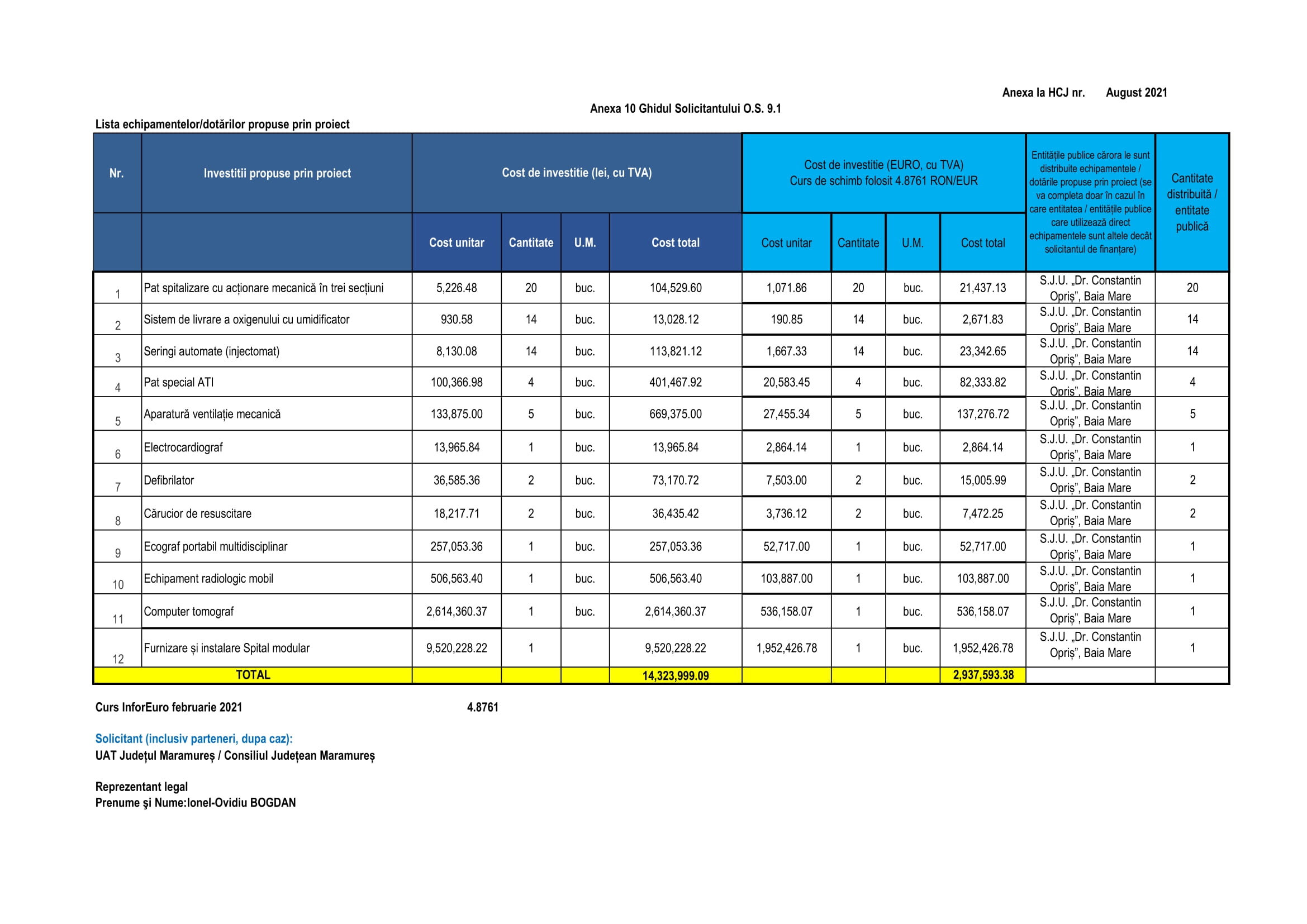 Echipamentele și dotările medicale din noul spital modular ce urmează a fi creat în cadrul Spitalului Județean Baia Mare ar urma să coste peste 2,9 milioane euro (click pe imaginea de mai jos pentru detalii).