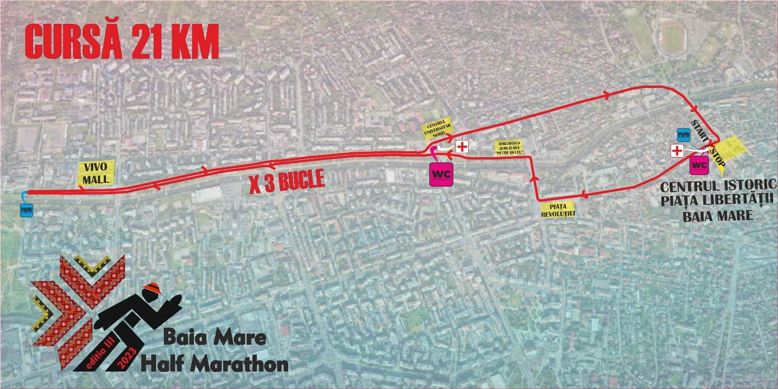 Pentru ca duminică, 17 septembrie să avem închiderea integrală a traficului rutier, în intervalul orar 6:00-14:00 pe următorul traseu: START Piața Libertății ( de la str. Podul Viilor până la magazin Central) Strazile: Gh. Șincai, Culturii (zona liceu V. Lucaciu) – Podul Culturii – bd. Independenței prin fața Bibliotecii Județene – bd. Independenței, se face bucla de la Universitate – retur pe Bd. Independenței – Universitate – str. Victoriei – Podul Viilor cu FINISH în zona de Start.