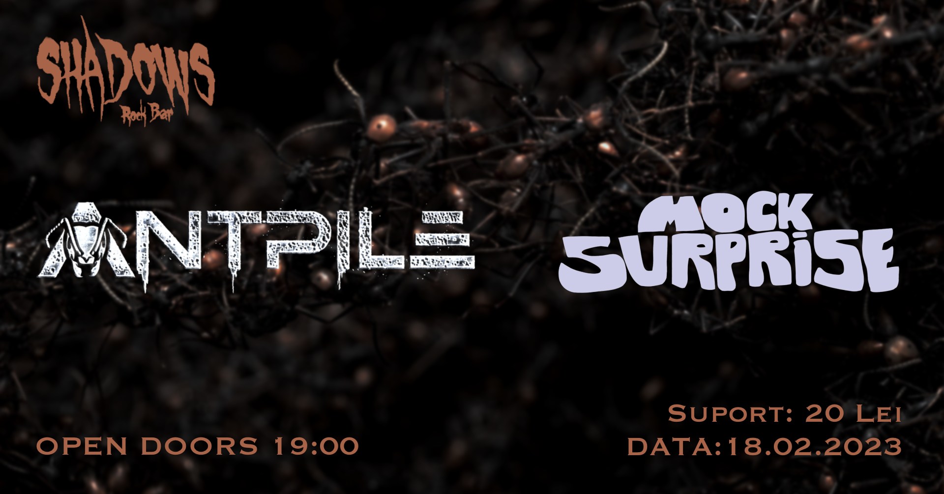 După o pauză cam lungă, cauzată de pandemia de coronavirus, revin concertele de muzică rock în Baia Mare. În acest final de săptămană avem programat un concert, unde altundeva, decat în Shadows Rock Bar, cu cei de la Antpile și orădenii de la Mock Surprise.