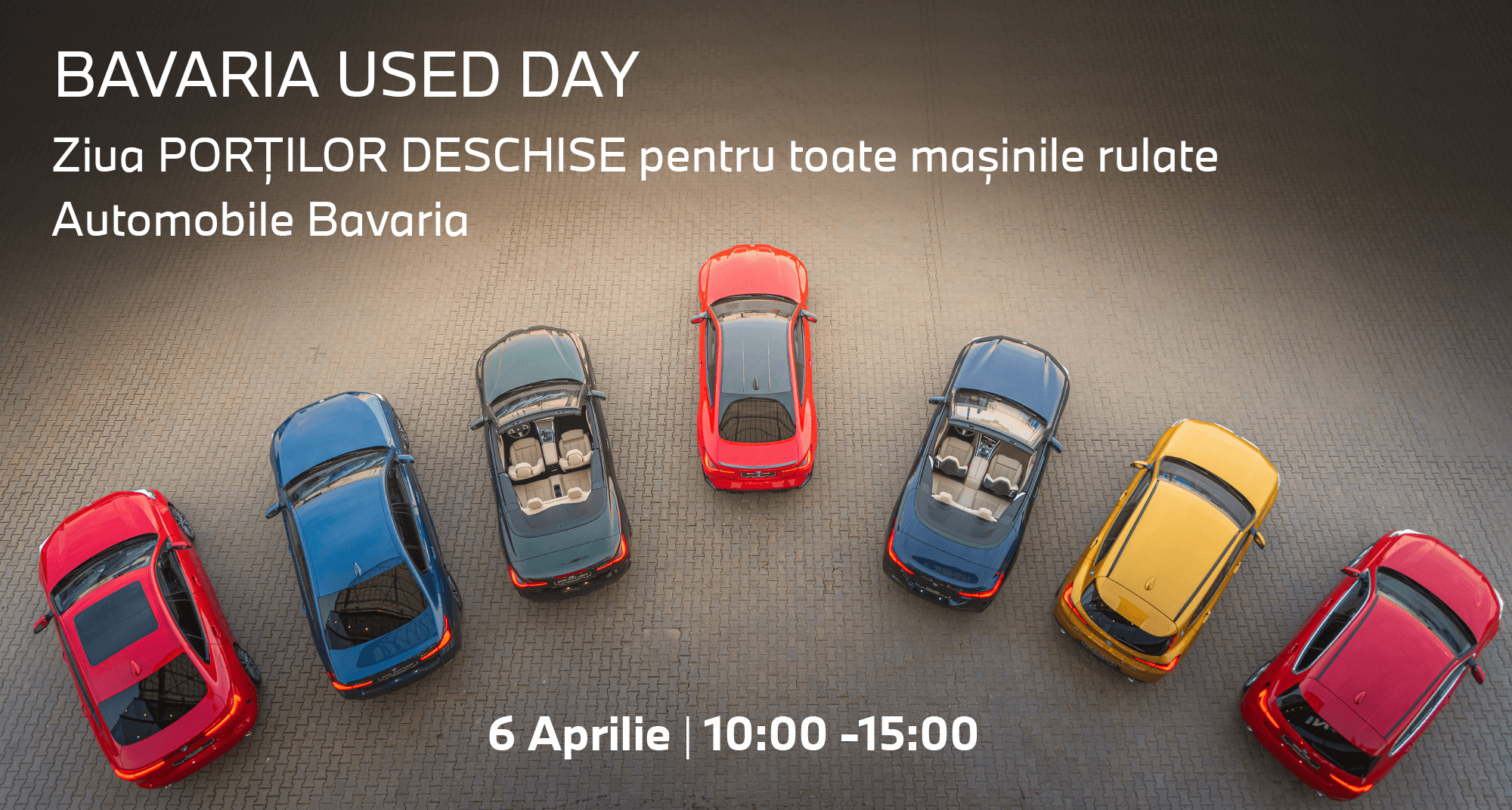 Bavaria Used Day este evenimentul care aduce în atenția tuturor mașinile premium, rulate, din stocul Bavaria Used (membră Automobile Bavaria Group). Cea de-a patra ediție a evenimentului va avea loc pe 6 aprilie 2024, în intervalul orar 10:00 – 15:00, în showroom-urile Automobile Bavaria din țară.