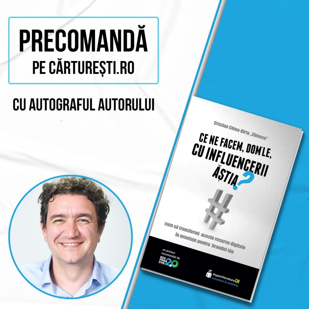 Bloggerul și antreprenorul Cristian China Birta lansează ”Ce ne facem dom‘le, cu influencerii ăștia?”, o carte despre influencer marketing destinată atât celor care activează în mediul de business, marketing și comunicare, cât și tuturor celor curioși să afle răspunsul la întrebarea din titlu.