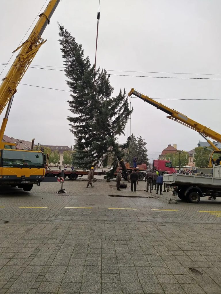 Bradul de Crăciun care va fi amplasat în centrul vechi al Băii Mari, ca în fiecare an, a fost adus azi. Urmează împodobirea acestuia, montarea de luminițe, pentru ca totul să fie gata pană în data de 30 noiembrie, cand se va da startul unei noi ediții a Targului de Crăciun. Ce este de remarcat este că anul acesta nu am auzit nimic de genul că „Baia Mare are cel mai și cel mai brad din Romania” sau alte remarci de genul.