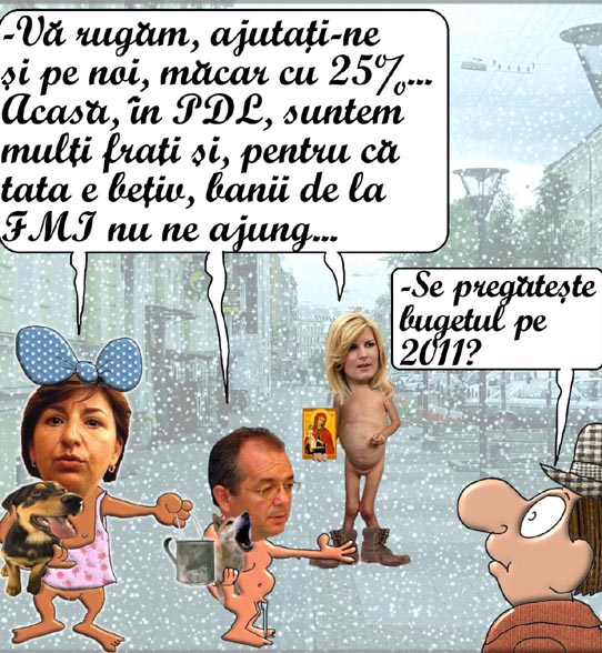 Bugetul pentru 2011 nu aduce nicio urma de speranta pentru pensionari, mamici, tinerii din sistemul de protectia copilului, asistati social si alte categorii defavorizate. La prospectia bugetara pentru anul viitor s-a avut in vedere, desigur, criteriul reducerii cheltuielilor si mentinerea statului in postura de principal cersetor.