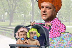 Dupa lamentabilul esec al motiunii, cei doi lideri ai opozitiei par niste copii mici, alimentati cu biberonul. O caricatura de Mihai Matei.