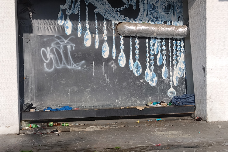 Exteriorul e de-a dreptul oribil, fiind culcuș pentru boschetari, iar drapelul țării care flutură rupt pe jumătate vine să completeze situația degradantă. De interior nu mai are rost să vorbim.