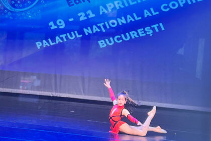 O gimnastă antrenată de băimăreanca Mirela Pașca, maestră emerită a sportului, înscrisă în campania „100 de tineri pentru dezvoltarea României”