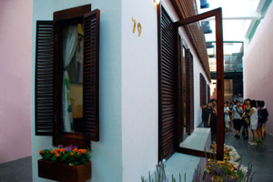 Artistul austriac Erwin Wurm, cel care a proiectat casa de poveste, a avut mai mult de lucru in interiorul casei unde a trebuit sa proiecteze canapele, carti, tablouri si scaune mult mai inguste decat cele pe care le stim. Cea mai ingusta casa din lume este socotita de creatorul ei o sculptura interactiva – vizitatorii o pot vizita pasindu-i pragul. O puteti admira la Viena.