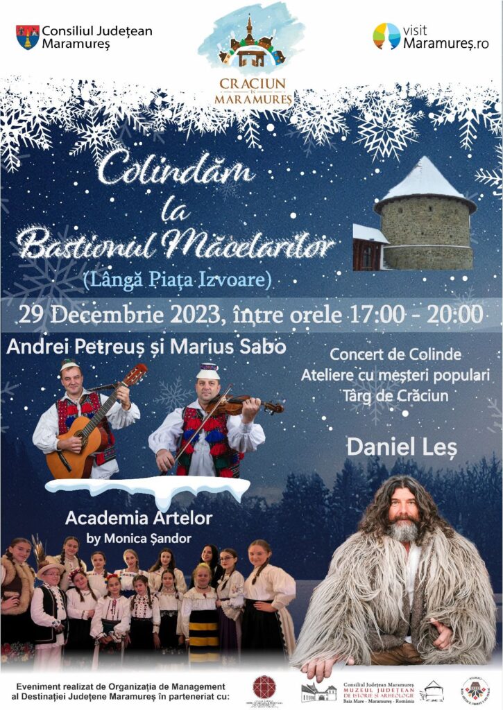 Meșterii populari au pregătit obiecte unicate de meșteșug, iar producătorii locali vor aduce în atenția vizitatorilor fel de fel de bunătăți pregătite cu dragoste în gospodăriile lor. Ediția din 29 decembrie 2023 a evenimentului ”Colindăm la Bastionul Măcelarilor” va aduce publicului un etalon moroșenesc al meșteșugului, olarul Daniel Leș, care va dezvălui mici secrete ale acestei meserii străvechi. De asemenea, artiști îndrăgiți, precum Andrei Petreuș și Marius Sabo, cât și grupul de colindători din cadrul Academiei Artelor, coordonată de către Monica Șandor, vor vesti Nașterea Mântuitorului.