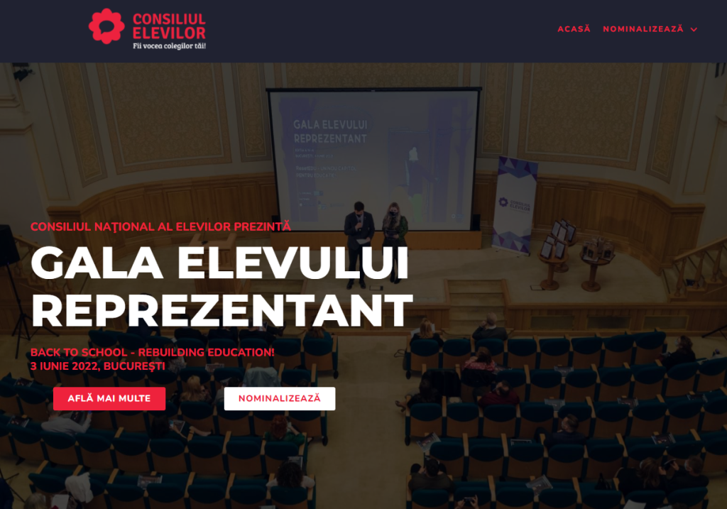 Consiliul Național al Elevilor organizează, în data de 3 iunie, Gala Elevului Reprezentant. Evenimentul, aflat la a V-a ediție, va avea loc în București cu scopul promovării actorilor implicați în mod curent în ameliorarea sistemului educațional din România. Ediția 2022 a galei reunește toți finaliștii edițiilor precedente într-un eveniment de mare anvergură, sub egida laitmotivului „Back to school – Rebuilding education!”