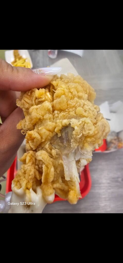 „Fetița mea a vrut un crispy picant. După două mușcături, mi-a spus: «Mama, ceva nu e în regulă cu carnea asta»”, povestește femeia, încă afectată.