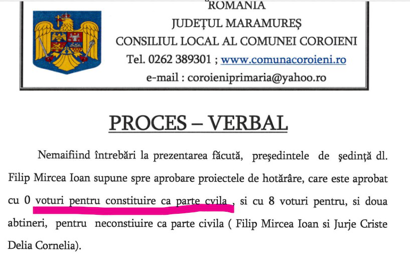Toate astea sunt menționate în procesul verbal al unei ședințe de Consiliu Local ce a avut loc, la Primăria din Coroieni, la sfârșitul lunii februarie a acestui an.