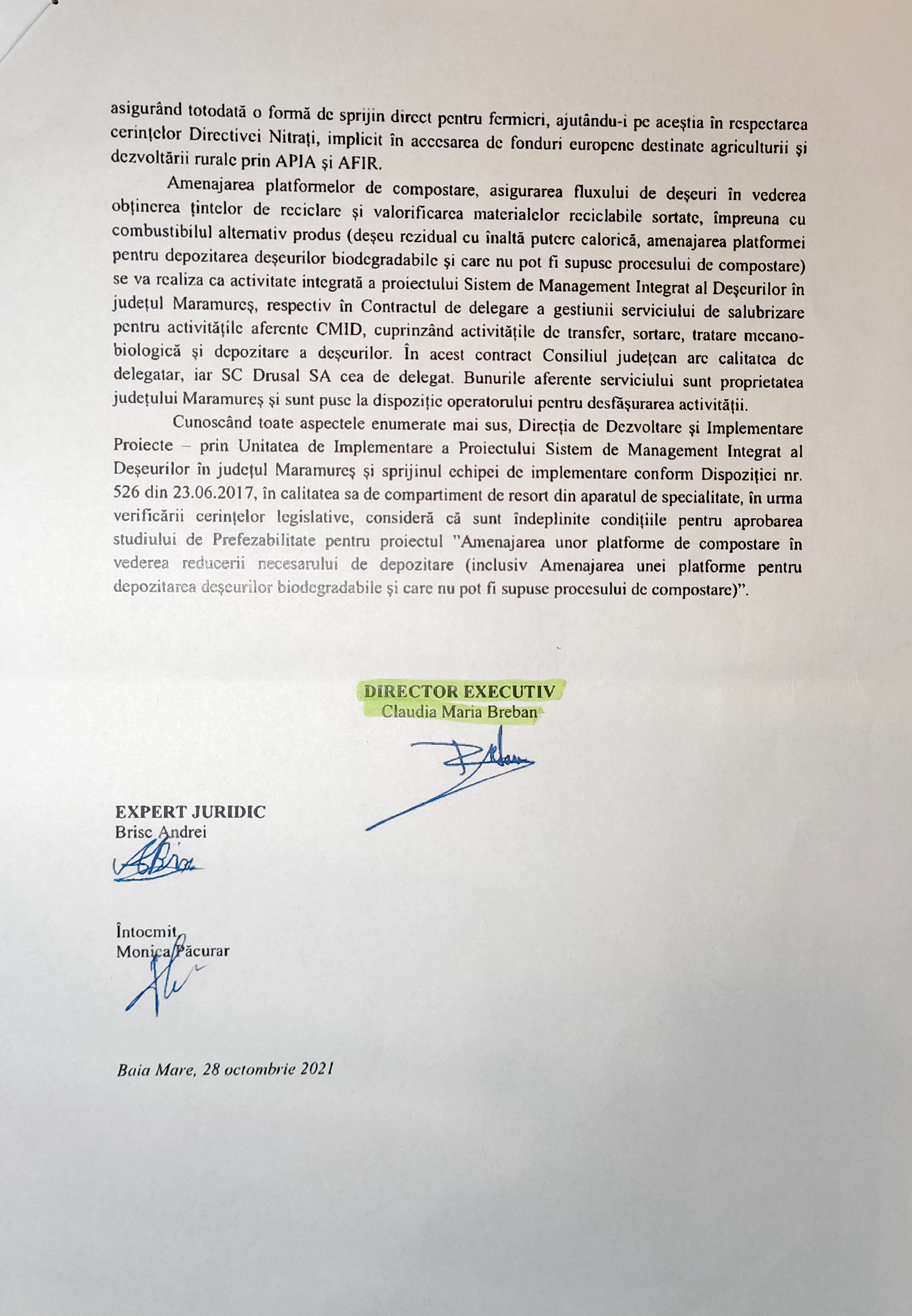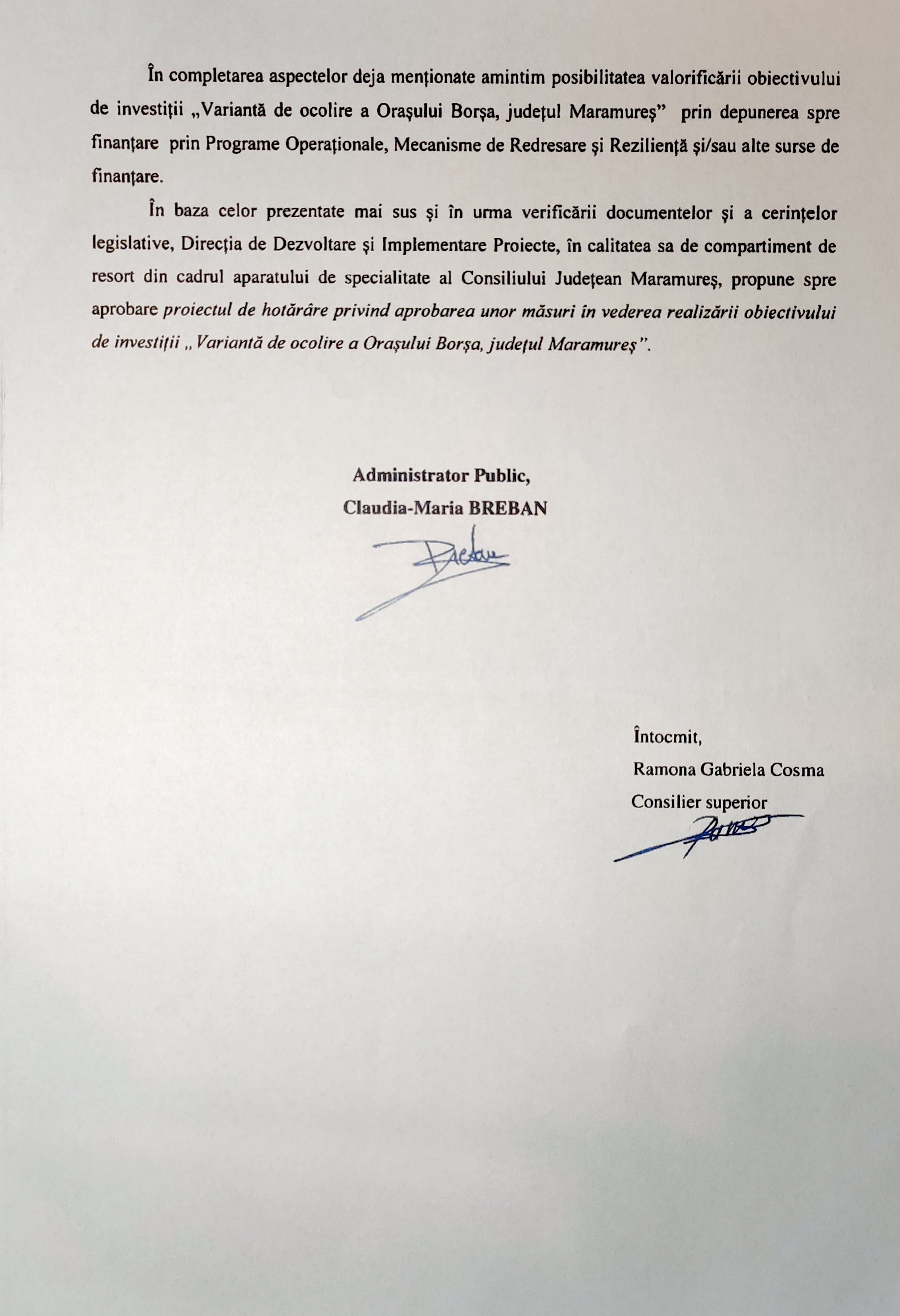 Cu titlu de exemplu, reproducem copii după două acte oficiale. Unul este emis de Direcția de Dezvoltare și Implementare Proiecte, în data de 26. 10. 2021, fiind semnat de Claudia Breban în calitate de administrator public (cu litere de tipar pentru ambele inițiale). Celălalt poartă antetul aceleiași direcții, fiind emis în data de 28. 10. 2021 și semnat de Claudia Breban, dar acum ca director executiv (cu majuscule pe tot rândul, să ne intre bine în cap că nu a renunțat la vechea funcție și se manifestă ca atare).