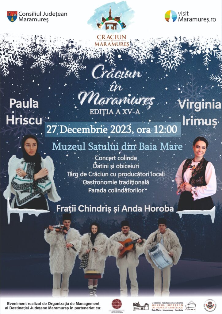 ”Povestea Crăciunului autentic, tradițional, bogat în datini și obiceiuri, continuă. După ce vă veți bucura de Sfintele Sărbători în tihna familiei, vă invităm să sărbătoriți Crăciunul și în mijlocul comunității. În data de 27 decembrie, în Muzeul Satului din Baia Mare va avea loc cea de-a XV-a ediție a evenimentului „Crăciun în Maramureș”. Această ediție este organizată de Organizatia de Management al Destinatiei Maramures și Consiliul Judeţean Maramureş, în parteneriat cu Muzeul Județean de Etnografie și Artă Populară Maramureș, Muzeul Județean de Istorie și Arheologie Maramureș și Centrul Județean pentru Conservarea și Promovarea Culturii Tradiționale „Liviu Borlan” Maramureș (Centrul Culturii Tradiţionale Maramureş).