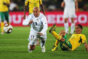 Uruguayenii, superiori din punct de vedere valoric, au controlat meciul la capitolul tactica inca din debut. Organizarea superioara a ”celestilor” a facut ca Bafana Bafana sa aiba prima ocazie decenta abia in minutul 40, cand Mphela a trimis cu capul pe langa poarta.