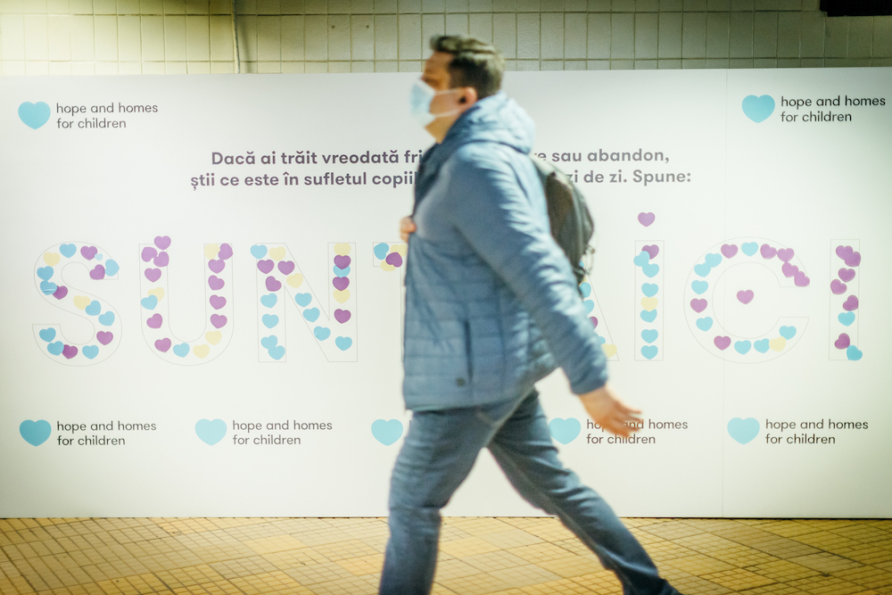 Pentru a marca Ziua Mondială a Copiilor Orfani, sute de oameni au fost invitați să compună în această dimineață, în pasajul de transfer de la stația de metrou Piața Victoriei, mesajul #SuntAici, pentru copiii fără sprijin. Acțiunea a fost posibilă cu sprijinul Metrorex, iar activarea publicului, sub forma unui performance interactiv cu implicarea directă a trecătorilor, a fost realizată cu ajutorul actorilor – adolescenți ai Academiei Victory of Art. Un scurt video cu acțiunea de astăzi la metrou puteți vedea aici.