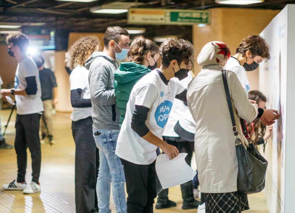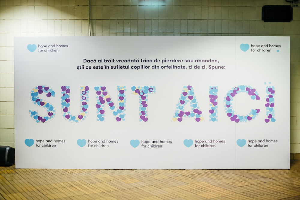Pentru a marca Ziua Mondială a Copiilor Orfani, sute de oameni au fost invitați să compună în această dimineață, în pasajul de transfer de la stația de metrou Piața Victoriei, mesajul #SuntAici, pentru copiii fără sprijin. Acțiunea a fost posibilă cu sprijinul Metrorex, iar activarea publicului, sub forma unui performance interactiv cu implicarea directă a trecătorilor, a fost realizată cu ajutorul actorilor – adolescenți ai Academiei Victory of Art. Un scurt video cu acțiunea de astăzi la metrou puteți vedea aici.