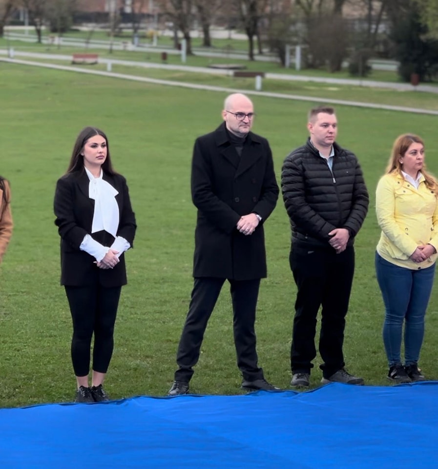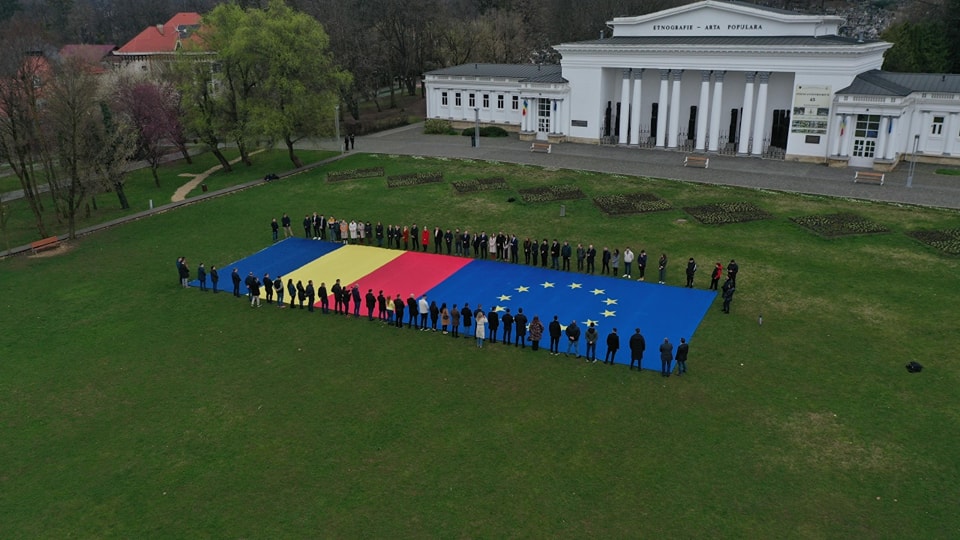 ”Pentru a sublinia importanța apartenenței la UE, tinerii liberali din Maramureș au desfășurat un steag de dimensiuni impresionante cu tricolorul României și steagul Uniunii Europene. Integrarea europeană a adus României investiții, dezvoltare și siguranță.