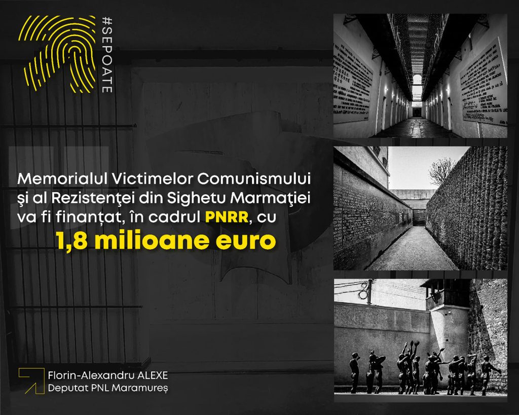 Memorialul Victimelor Comunismului şi al Rezistenţei din Sighetu Marmaţiei va fi finanțat, în cadrul PNRR, cu 1,8 milioane euro, anunță deputatul PNL de Maramureș, Florin-Alexandru Alexe.