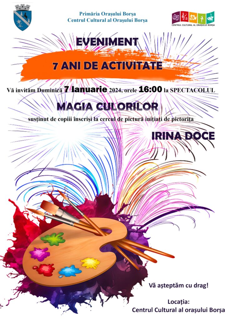 Elevii cercului de pictura Borșa-Vișeu de Sus vă invită in data de 7 Ianuarie, la ora 16.00, sa petreceți împreună momente unice, momente pline de magie și culoare, îmbinate cu emoție, entuziasm și bucurie pe scena Casei de Cultură Borșa.