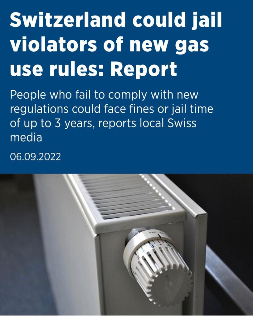 Elveția intenționează să pedepseasca cetățenii și firmele care nu respectă noile reguli impuse pentru reglementarea consumului de gaze în această iarnă.