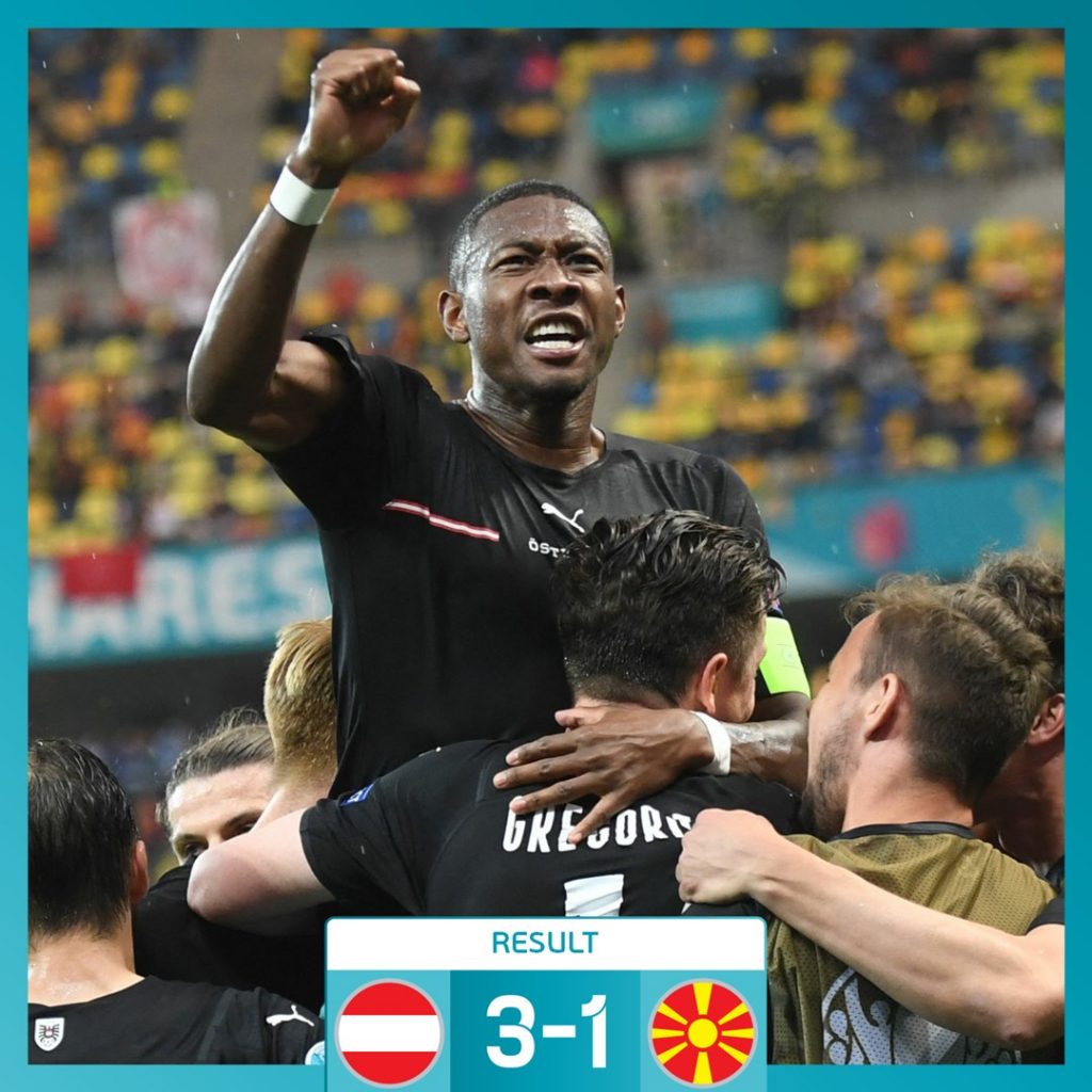 Naţionala de fotbal a Austriei a reuşit prima sa victorie la un turneu final de Campionat European, 3-1 (1-1) cu Macedonia de Nord, duminică seara, pe Arena Naţională din Bucureşti, la cel dintâi meci organizat de România la EURO 2020, informează AGERPRES.