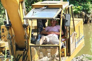 Imaginile surprinse de noi in cursul zilei de luni ne arata exact celeritatea cu care se reface malul prabusit. Omul muncii, lemn de somn, pe singurul excavator prezent pe santier. Asa, vreo doua ore, de incalzire, pana vine pauza de masa, cand, ca tot angajatul sarguincios, primeste si o bine meritata pauza de masa.
