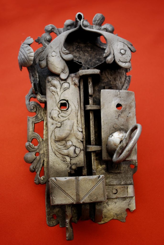 ZĂVORUL MASIV DE POARTĂ (secolele XVII-XVIII) este pentru această săptămână „Exponatul săptămânii”, cu corpul dreptunghiular, terminat în partea superioară cu elemente decorative vegetale. Aceleași ornamente se regăsesc în zona mediană, într-un registru paralel cu sistemul de închidere care păstrează cheia originală. Piesa se termină cu trei prelungiri aplatizate. Dimensiuni: L=32,2 cm; l=16 cm; h=7 cm.