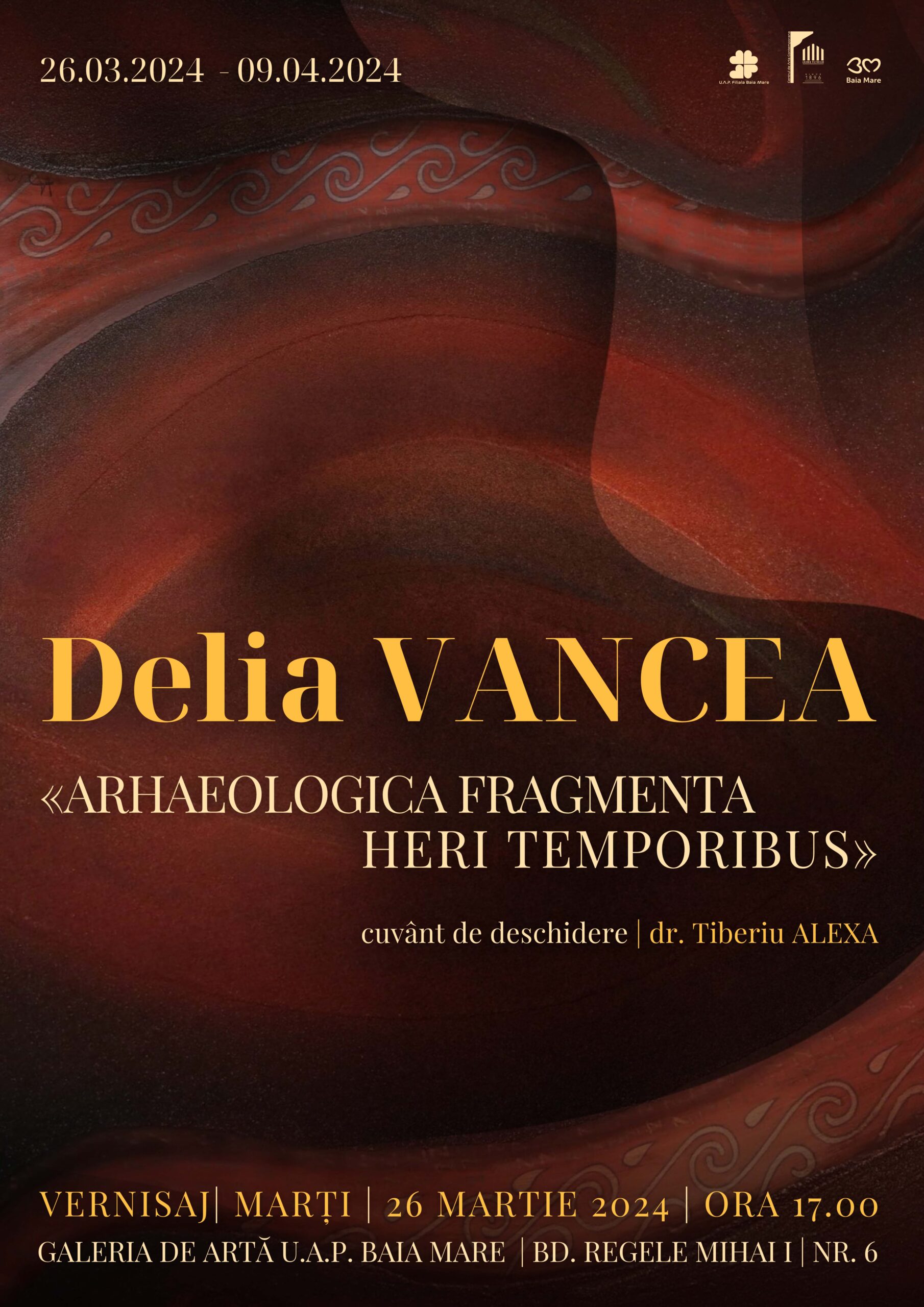 La Galeria de Artă Baia Mare va avea loc deschiderea expoziției și vernisajul artistului plastic Delia Vancea, ce va avea loc la Galeria de Artă U.A.P. Baia Mare, marți 26 martie 2024, ora 17:00. Este vorba despre expoziția «Arhaeologica Fragmenta Heri Temporibus»