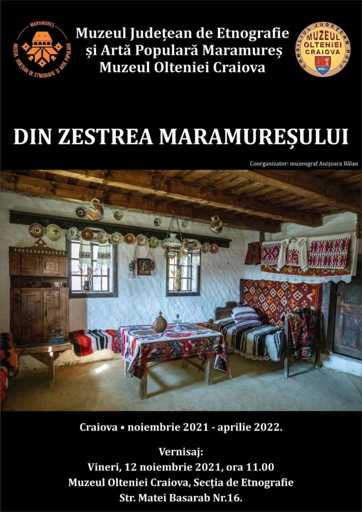 Vineri, 12 noiembrie 2021, ora 11:00, Consiliul Județean Maramureș prin Muzeul Județean de Etnografie și Artă Populară Maramureș vernisează în parteneriat cu Muzeul Olteniei din Craiova expoziția ”Din zestrea Maramureșului”.