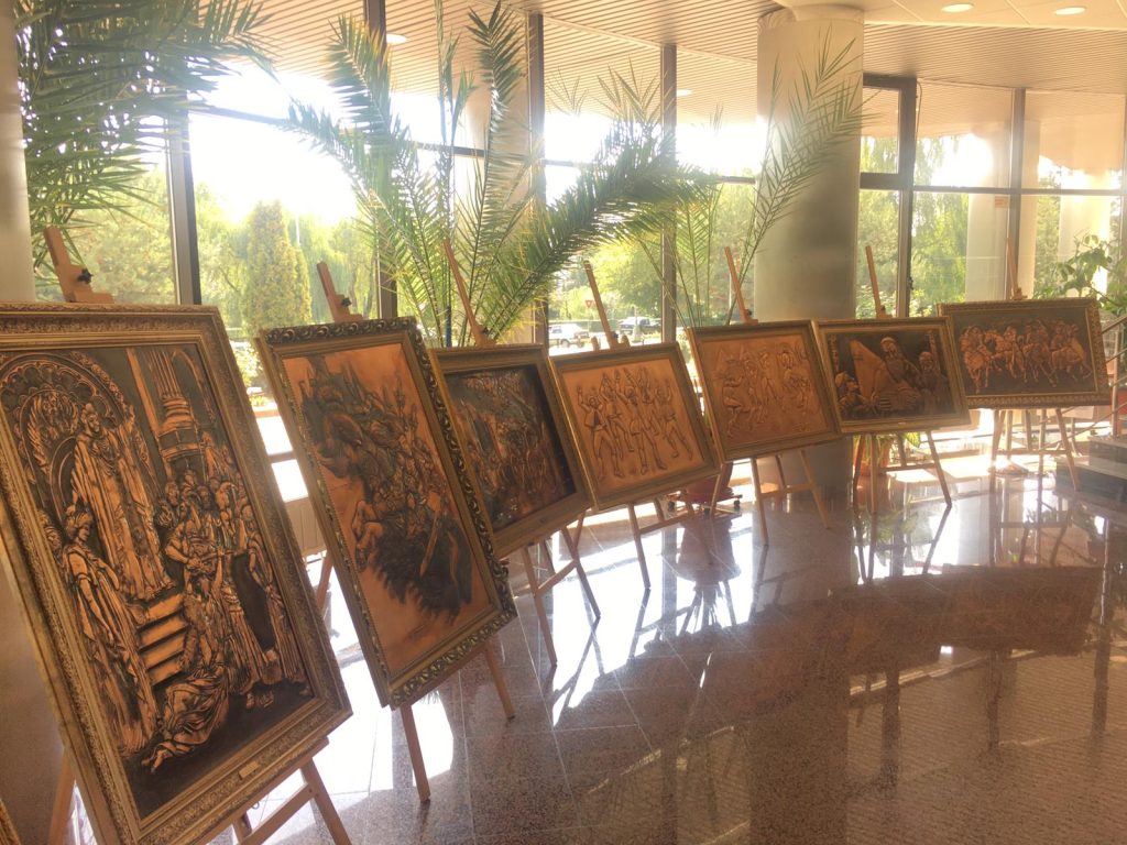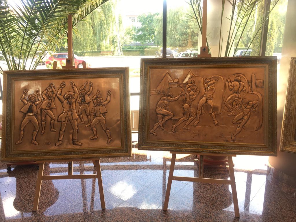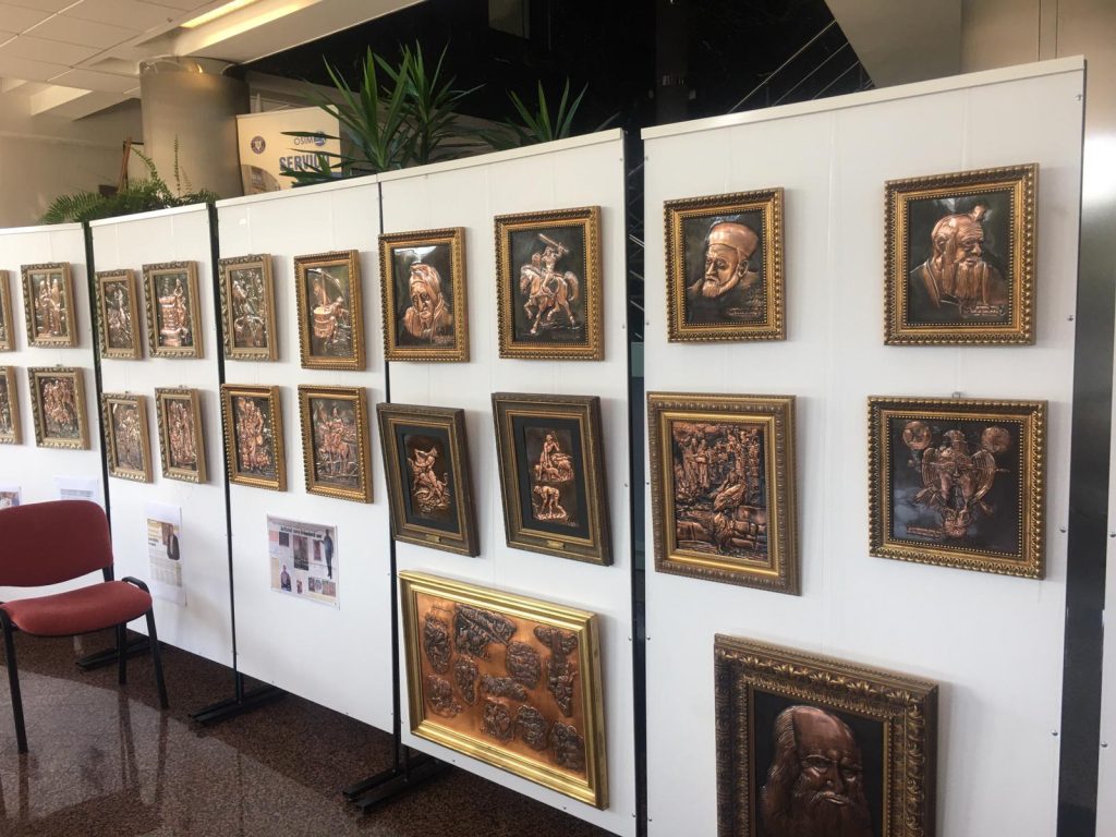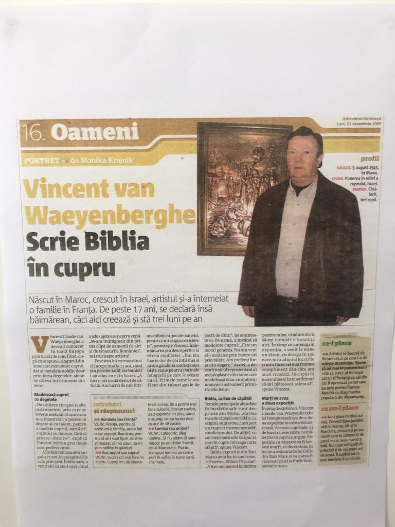 ”Artistul, care se află la a treia participare pe simezele bibliotecii județene, a adus din nou la Baia Mare lucrări modelate în cupru, aur și argint, precum și un sul de pânză de 42 de metri înfățișând scene și personaje biblice.