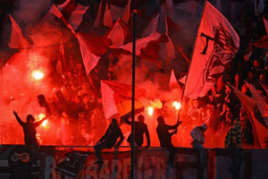 Momente mai putin normale pentru un meci de fotbal, in aceasta seara, pe stadionul Giulesti, la meciul din cadrul sferturilor de finala a Cupei Romaniei, dintre Rapid si Steaua. La doar 10 minute de la inceperea partidei, galeria stelista, formata din 400 de suporteri, si-a dat in petec, aruncand cu petarde si torte in teren, fapt ce a dus la intreruperea meciului pentru cateva minute.