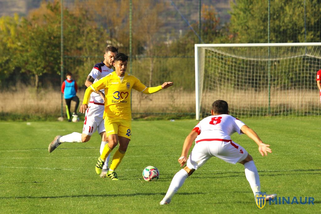 Minaur a fost condusă cu 1-0 după ce căpitanul gazdelor, Cosmin Letan, a transformat un penalty, dar a jucat până la capăt prima parte, reușind să egaleze prin Sergiu Ciocan, în al doilea minut de prelungire. În partea a douam același Ciocan a marcat dintr-un penalty, aducând echipa noastră în avantaj. Un al treilea penalty în meci a fost transformat de Letan, care a egalat situația cu cinci minute înainte de final. Din fericire, în prelungirile meciului, Mircea Donca a izbutit un eurogol, care a adus și trei puncte echipei noastre.