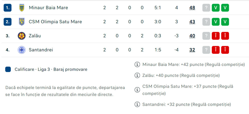 Minaur conduce în clasamentul Ligii a III-a, seria a X-a, cu 5 puncte avans față de CSM Olimpia Satu Mare.