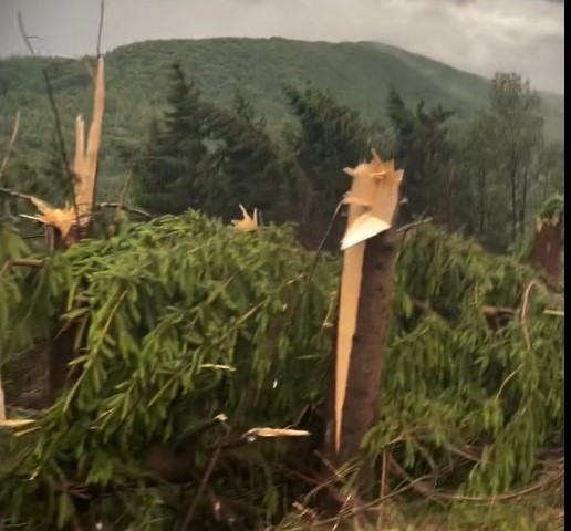 Drumul județean 184 a fost acoperit de aluviuni și vegetație transportate de torenții de pe versanți care nu au putut fi preluați de sistemul de canalizare. Pompierii militari au degajat din zona rețelelor de alimentare cu energie electrică copacii prăbușiți de rafalele puternice de vânt. La Văleni, comuna Călinești vijelia a pus la pâmânt zeci de arbori.