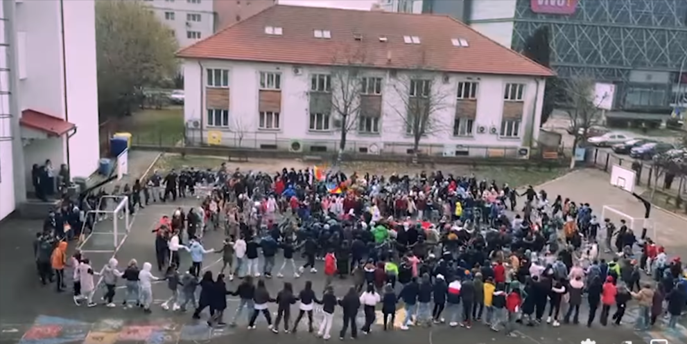 Se apropie Ziua Națională a României, iar elevii de la Școala Gimnazială „Dr. Victor Babeș” Baia Mare au ieșit în curtea școlii și au făcut Hora Unirii.