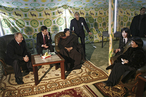 Liderul de la Caracas supravegheaza eforturile de ajutorare in urma inundatiilor si alunecarilor de teren care s-au soldat cu moartea a 38 de persoane si cu evacuarea altor catorva mii. Gaddafi si-a folosit unul din corturile de beduin atunci cand a efectuat vara trecuta o vizita la Caracas, cu ocazia unui summit, stabilindu-si tabara langa piscina hotelului, unde l-a primit pe Chavez.
