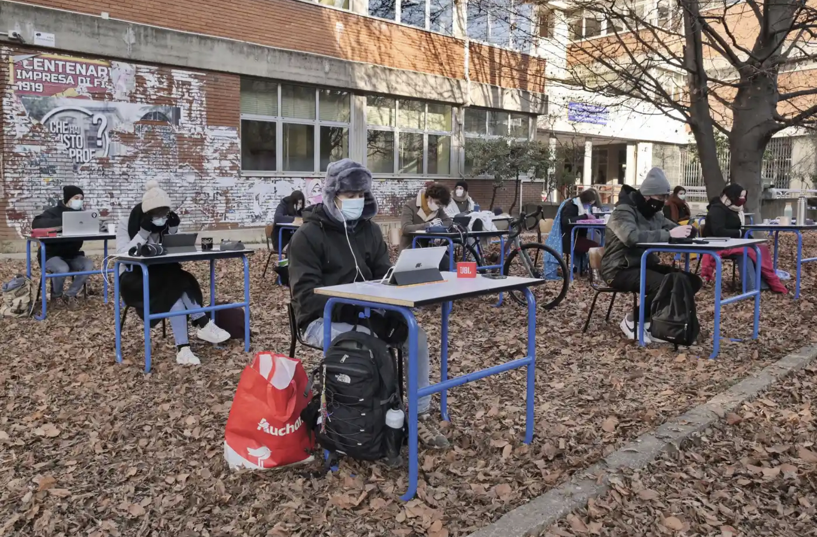 Imaginea zilei: protest al elevilor din Bergamo care le-au cerut autorităților să fie permisă reluarea cursurilor în clase