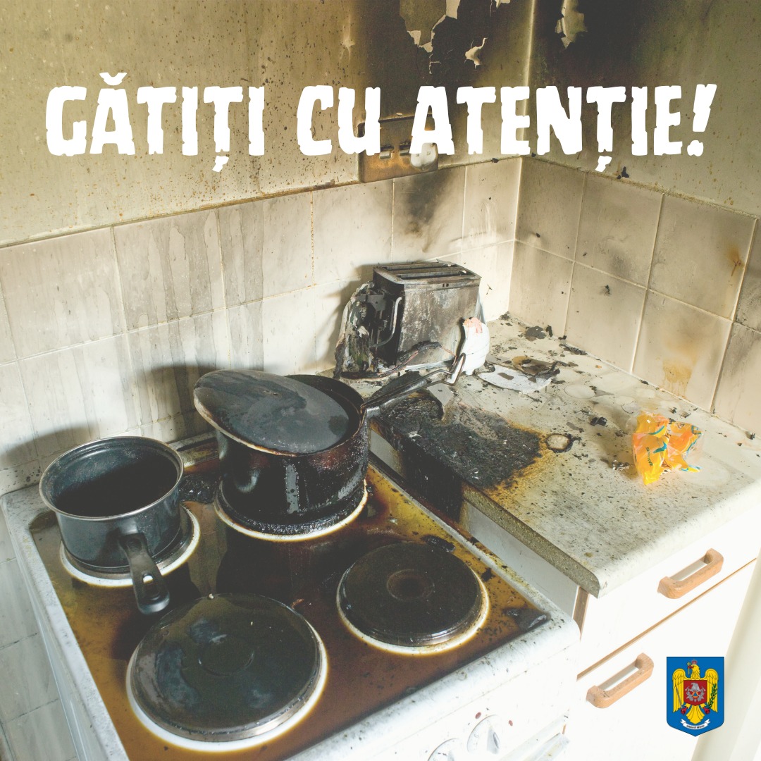 Dacă tigaia ia foc, nu stingeți NICIODATĂ flăcările cu apă! Acoperiți-o cu un capac și opriți alimentarea cu gaz. Țineți capacul până când tigaia se răcește complet. Dacă apreciați că această manevră vă pune în pericol viața, opriți alimentarea cu gaz și electricitate, închideți ușa și ieșiți din clădire. Apelați cât mai rapid posibil numărul unic de urgență 112!”, arată IGSU.